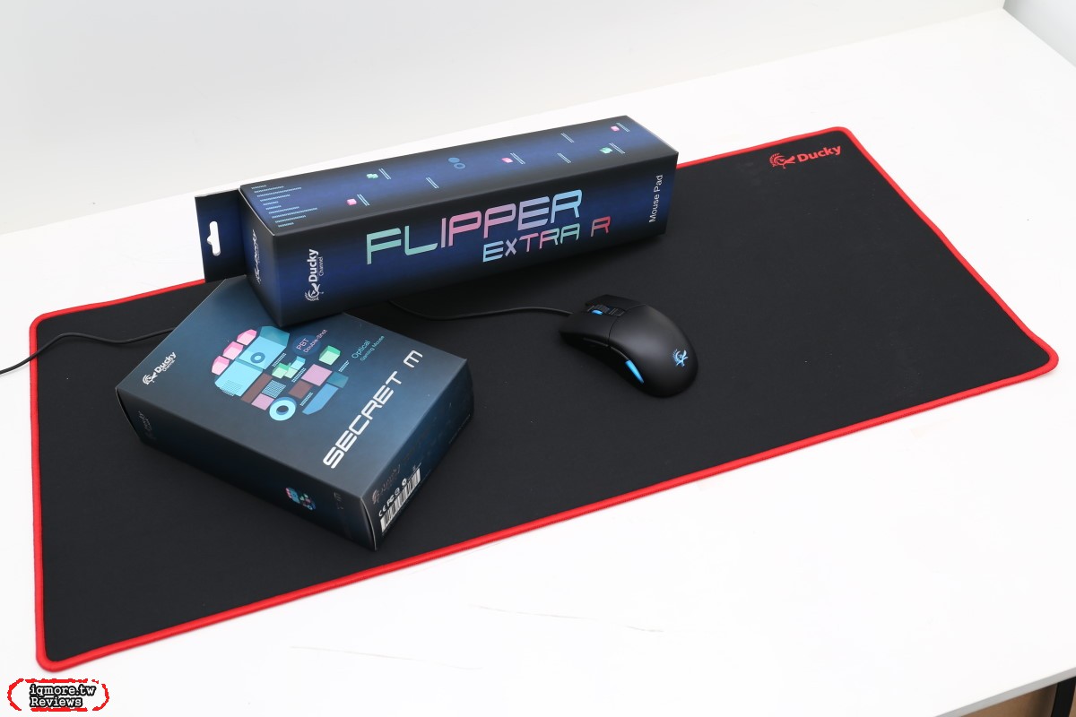 目前價位方面,別以為外觀尺寸變小成本就更低,因為加上二色成形的材料與模具等費用其實是差不多的,而在看不到的開發花費成本還高出許多。最後的售價與之前相同,維持於新台幣1590元。而其搭配的超大鼠墊(800 x 350 x 3mm),也升級為紅色縫邊的Ducky Flipper Extra R,整體搭配更是絕配。不過滑鼠的握感屬於見仁見智,但相信若覺得Secret太大支的話,這一支Ducky Secret M更值得一試。