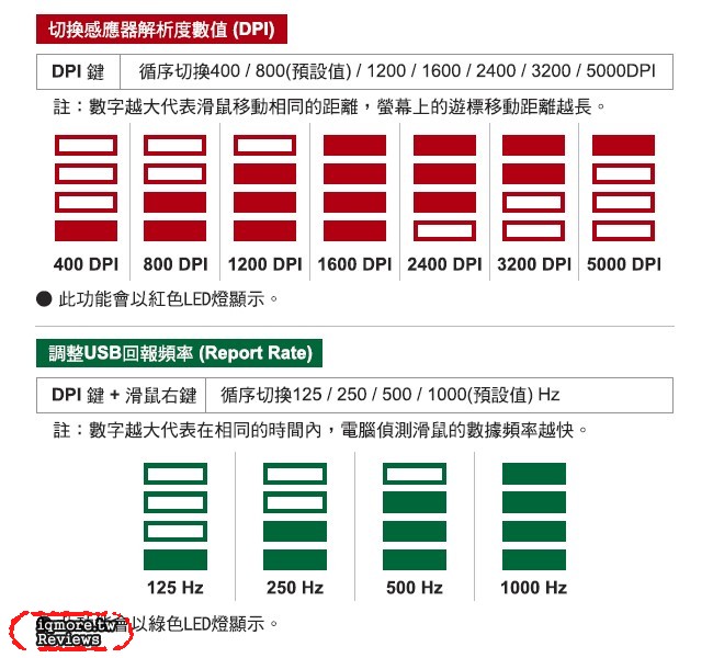 ▲ 關於 Ducky Secret M Optical 的DPI、USB Report Rate操作說明圖。