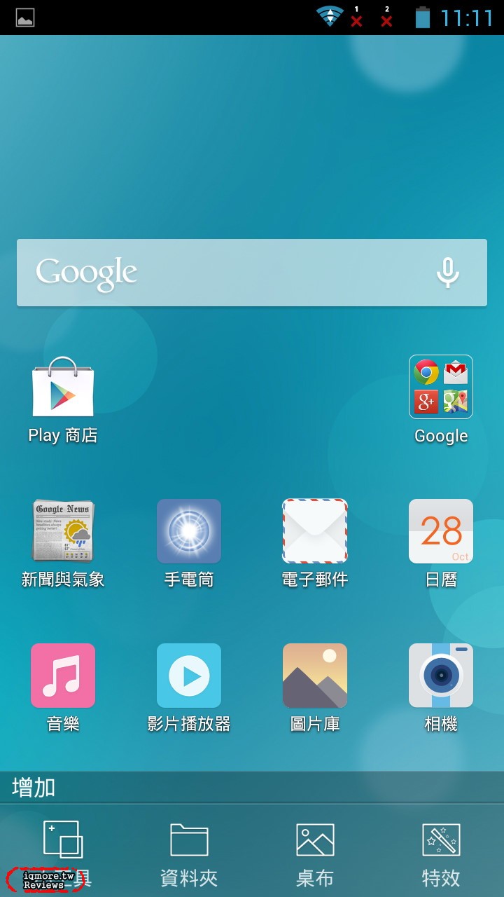 InFocus M320 雖然是採用Android系統,不過在使用層面上InFocus M320 採用「In Life UI」設計,為單層UI設計,看到App就能直接點選使用。因此,不會有「所有App」的列表,會直接將這些App散落在這些首頁上。
