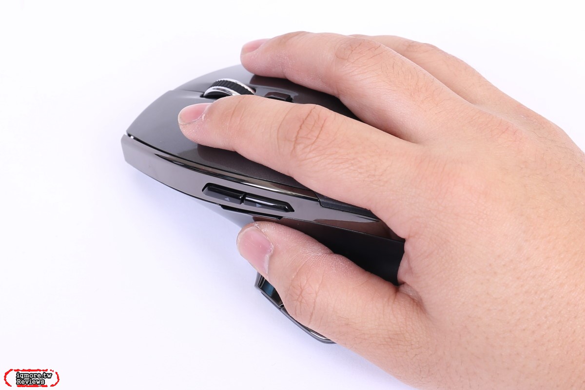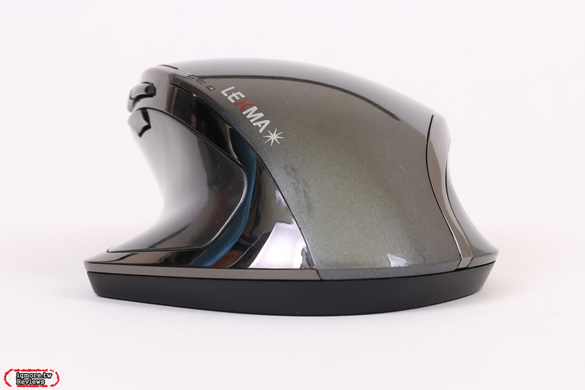 LEXMA M850R的外型很明顯看的出專為右手設計的型狀,而尺寸規格為126 x 82 x 45 mm,屬於中大型滑鼠。老貓在一些公開場合介紹周邊產品時,都會強調由於每個人的手型不同,對於不同滑鼠的外型適應度也都不同,因此若能實際握過還是比較好一些。在握感方面來說,姆指會放置在左側的延伸出來的部分,因此在移動時是不會碰觸到桌面。而右手的無名指,可以選擇放在右鍵、邊角或右側處,老貓的習慣是剛好放在邊角,如此一來抬起滑鼠會較為容易些。對於無法實際握LEXMA M850R的使用者來說,老貓只能簡單的說明一下握感,畢竟每個人握滑鼠的方式皆不同。