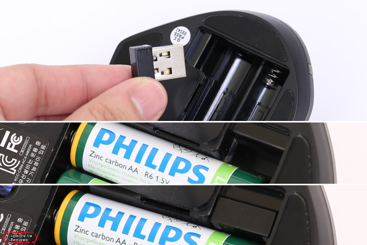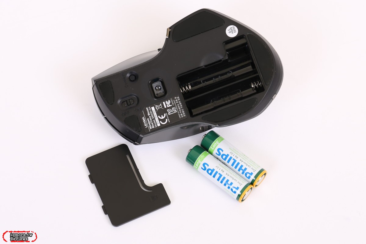 LEXMA M850R的2.4GHz USB無線接收器,平常不使用時可以收納於電池蓋內。