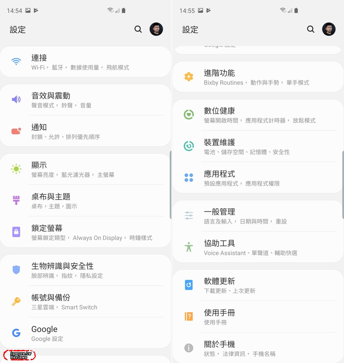 ▼ Samsung Galaxy S10+ 設定相關頁面,很多特別的功能都可以在此找到。
