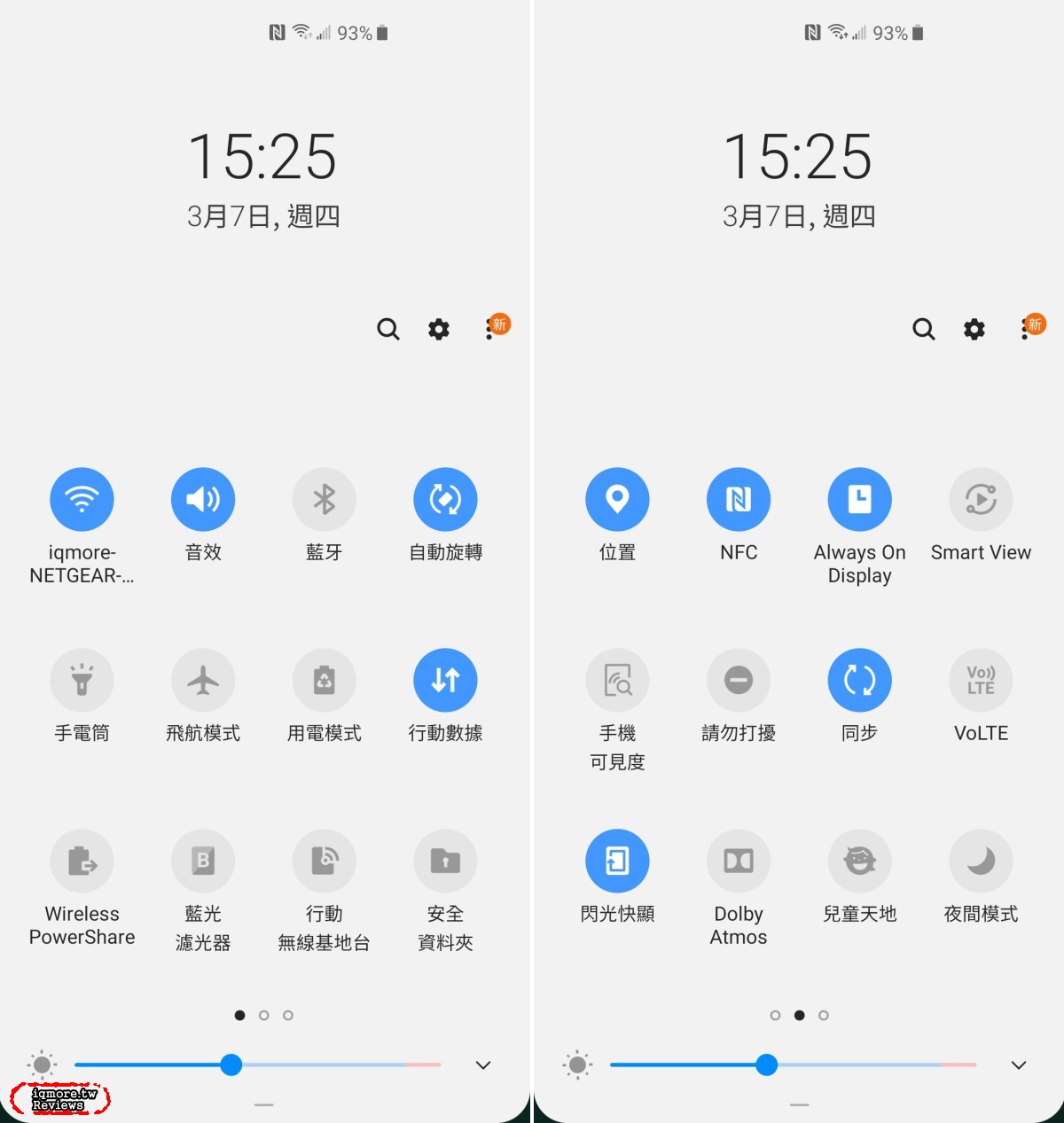 ▼ Samsung Galaxy S10+ 由上往下滑,會列出許多快捷選單。