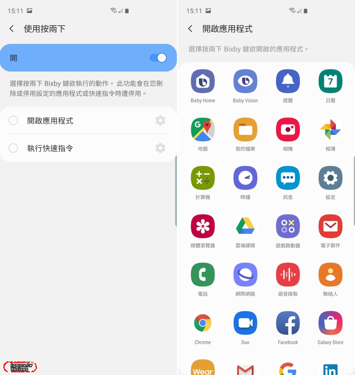 ▼ 也能更改成按下Samsung Galaxy S10+ 的Bixby鍵後,可以執行其他程式。
