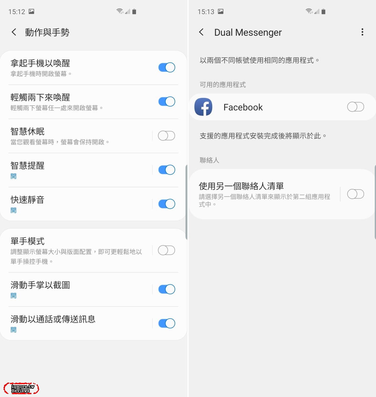 在其他的操作功能來說,Samsung Galaxy S10系列一樣可以執行分割視窗、彈出式視窗都沒有問題。也提供了安全資料夾、Dual Messenger來雙開其他程式App。或者提供一些動作手勢操作,例如拿起手機、或者輕點螢幕會有什麼動作。以上這些多種操作來說,都是屬於系統提供的功能服務,這些以前就受到歡迎的功能,當然在這支手機上一樣擁有。只是已成為了Samsung手機的標配功能,因此在有些特色的介紹上會比較少看到,但別擔心,這些功能都還是有提供。