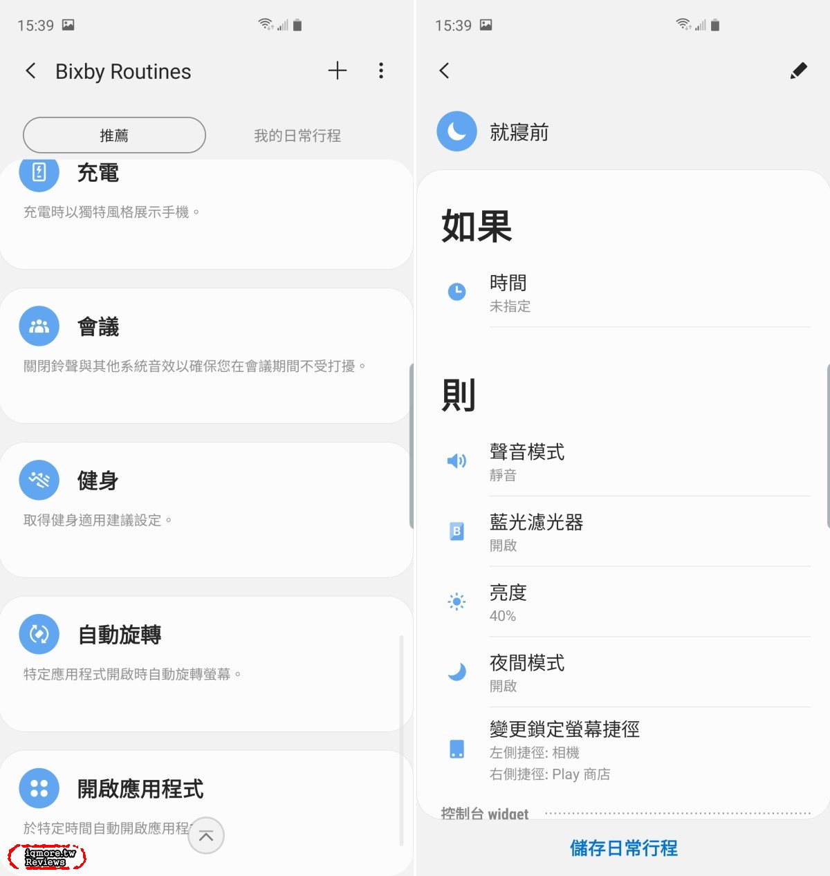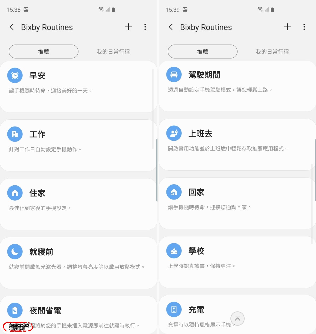 ▼ Samsung Galaxy S10+ 在 Bixby Routines頁面中,列出許多情境可以設定。