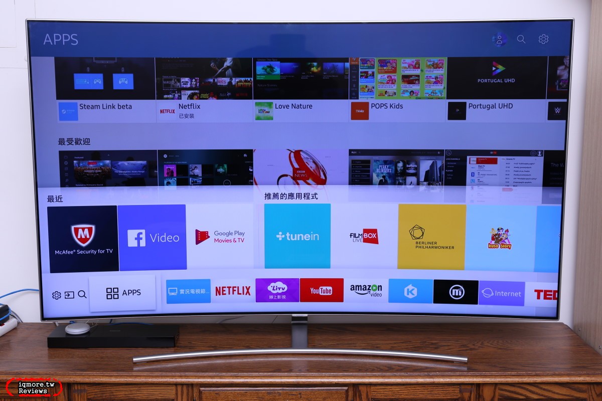 ▼ Samsung 65 吋 曲面QLED 量子電視 Q8C預設已經有安裝一些App可以觀看網路影片。